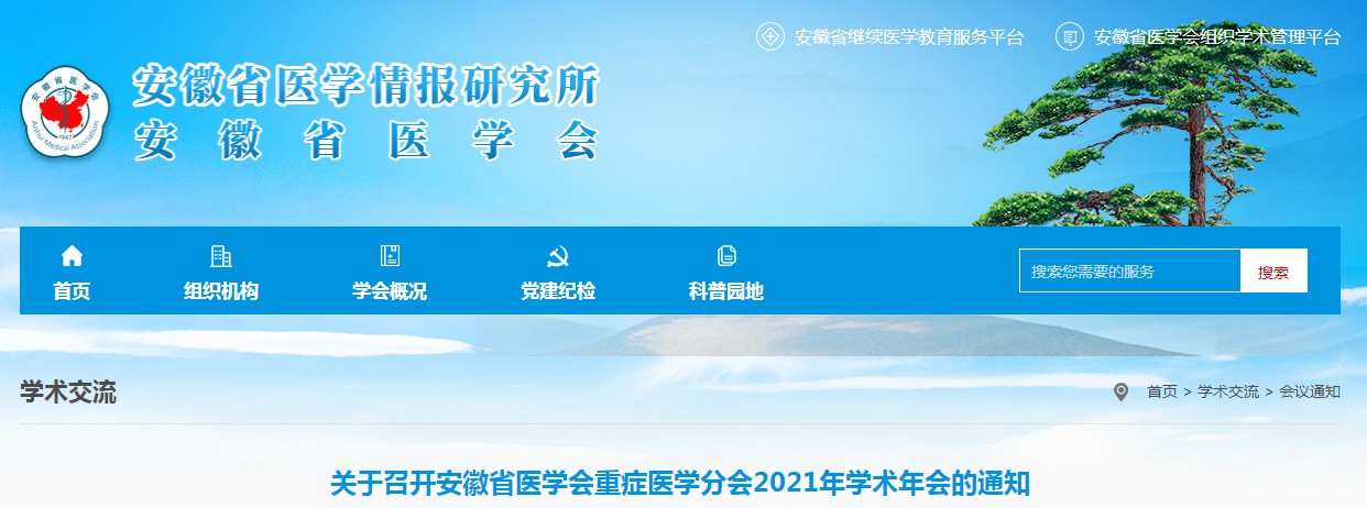 安徽省医学会重症医学分会2021年学术年会通知