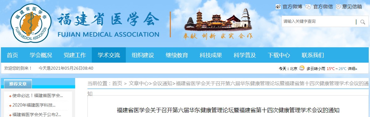 福建省医学会第十四次健康管理学术会议通知