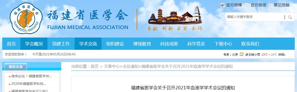 福建省医学会关于召开2021年血液学学术会议的通知