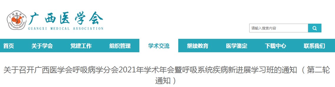 广西医学会呼吸病学分会2021年学术年会第二轮通知