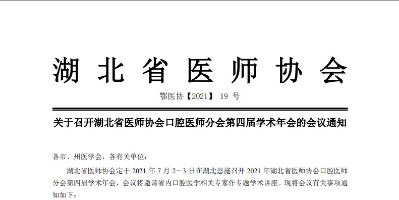 湖北省医师协会口腔医师分会第四届学术年会会议通知
