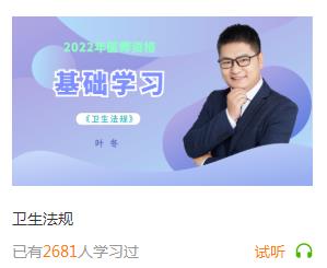 叶冬2022年临床助理医师《卫生法规》新课开通!立即免费体验!