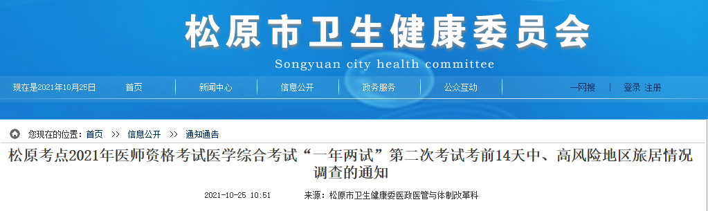 吉林考点关于2021年临床助理医师二试考生下载并填写《旅居史调查表》的通知