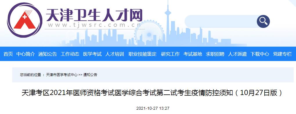 天津考区2021年临床助理医师资格考试(二试)疫情防控须知(11月10日版)
