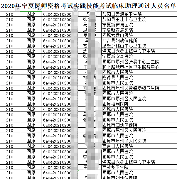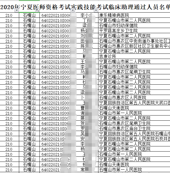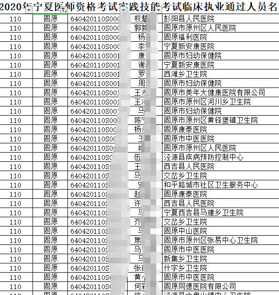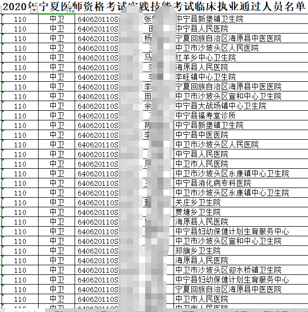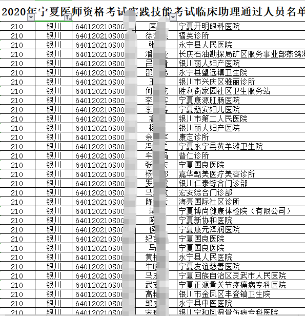 2020年临床执业助理医师实践技能考试中卫考点技能考试成绩合格考生名单公布