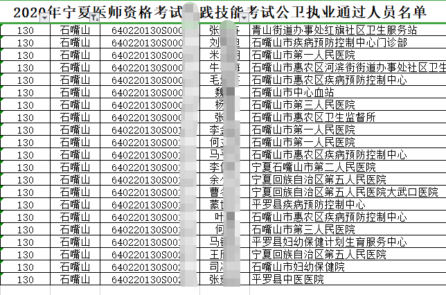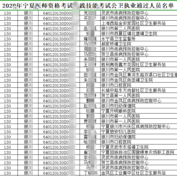 2020年宁夏中卫考点公卫执业医师实践技能考试成绩考生通过名单