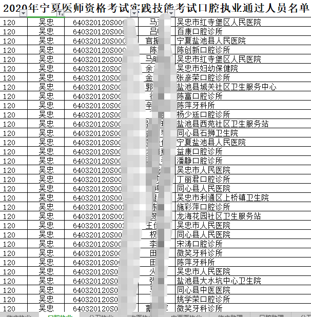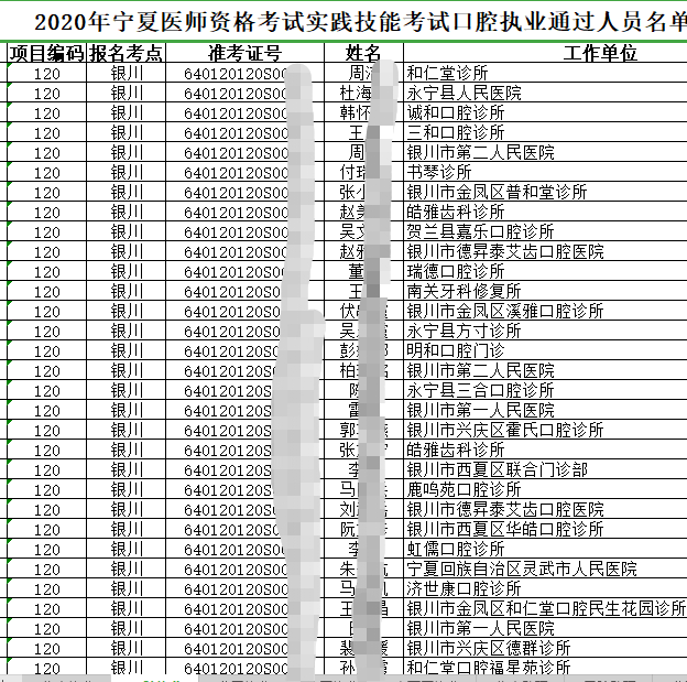 2020年宁夏银川考点口腔执业医师实践技能考试成绩通过人员名单公布!