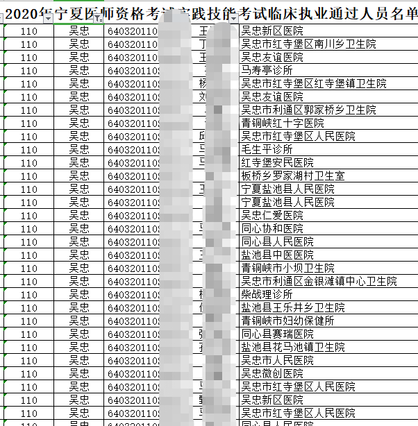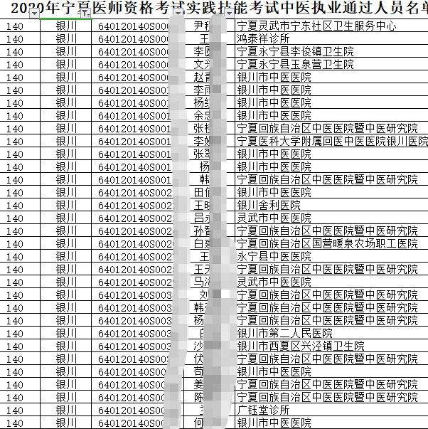 宁夏吴忠考点2020年中医执业助理医师实践技能考试成绩公布!附合格人员名单