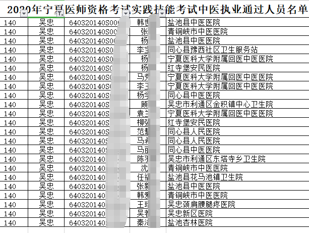 2020年中医执业医师实践技能考试【吴忠考点】技能考试成绩合格名单公布!