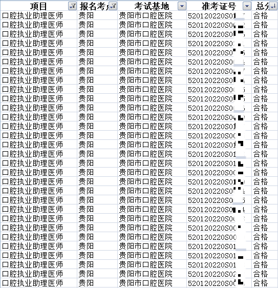 黔西南2020口腔执业医师资格实践技能成绩汇总