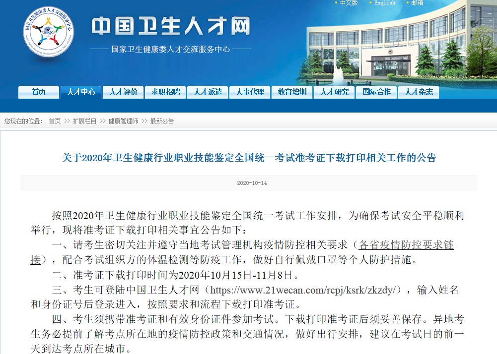 【重磅】2020年健康管理师准考证打印入口已开通!