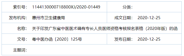 关于印发广东省中医医术确有专长人员医师资格考核报名表格(2020年版)的函