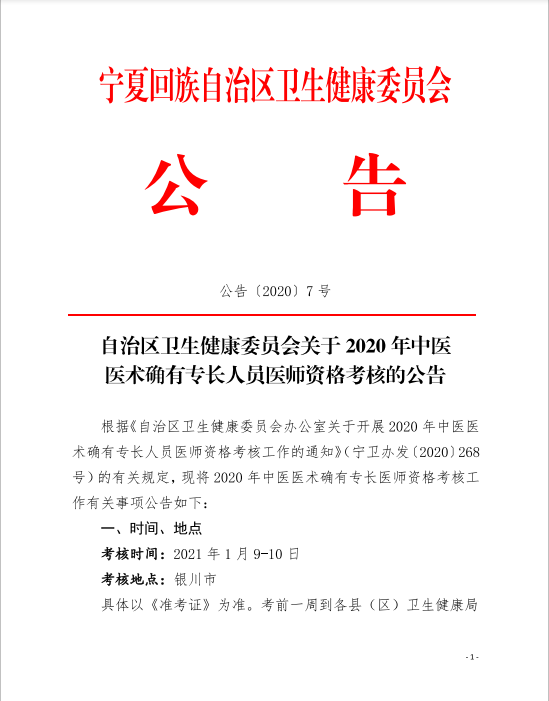 宁夏关于2020年中医医术确有专长人员医师资格考核的公告