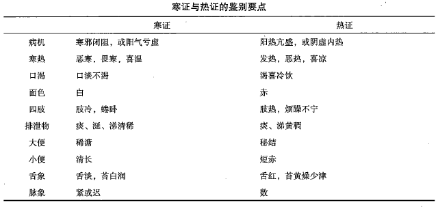 中医诊断学八纲细目三寒热(三)寒证与热证的鉴别要点