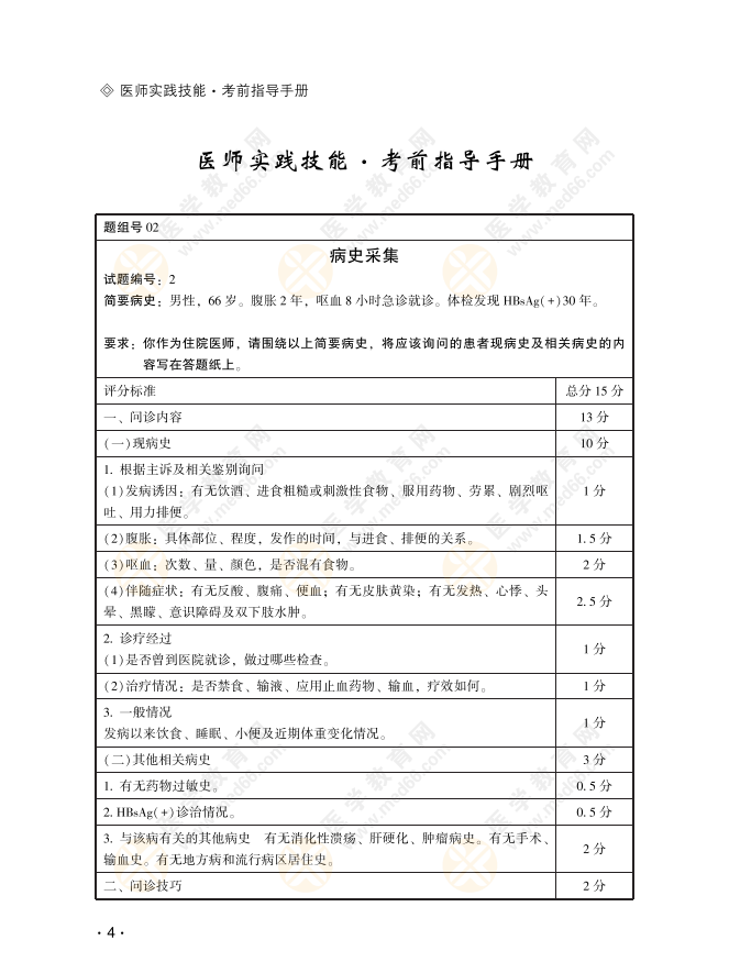 2022年临床执业助理医师实践技能-病史采集模拟题