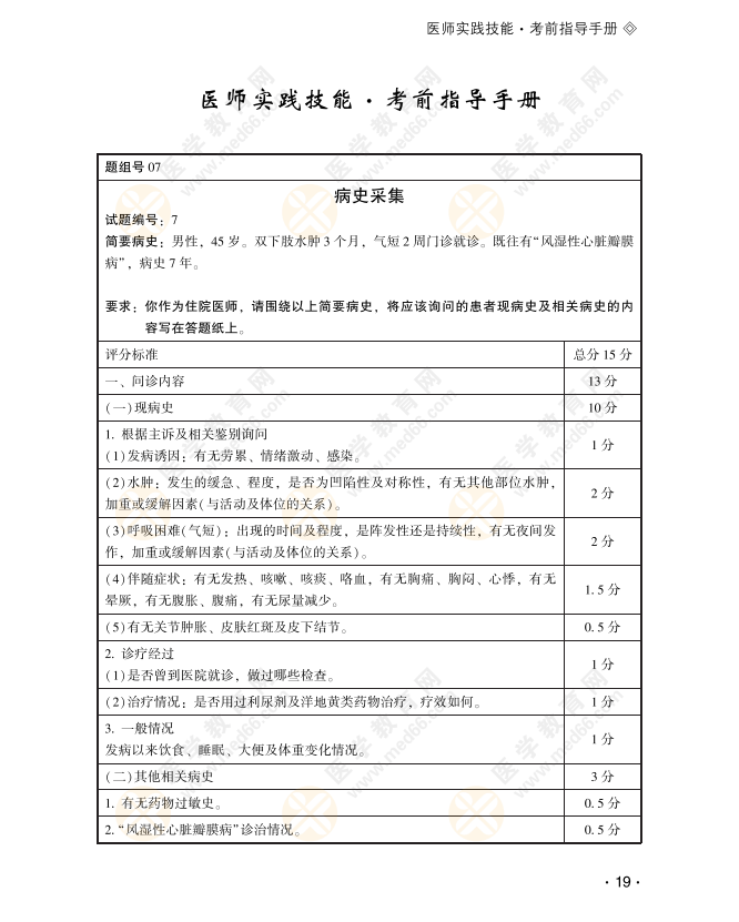 2022年临床执业助理医师实践技能考试【水肿】病史采集
