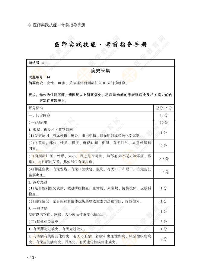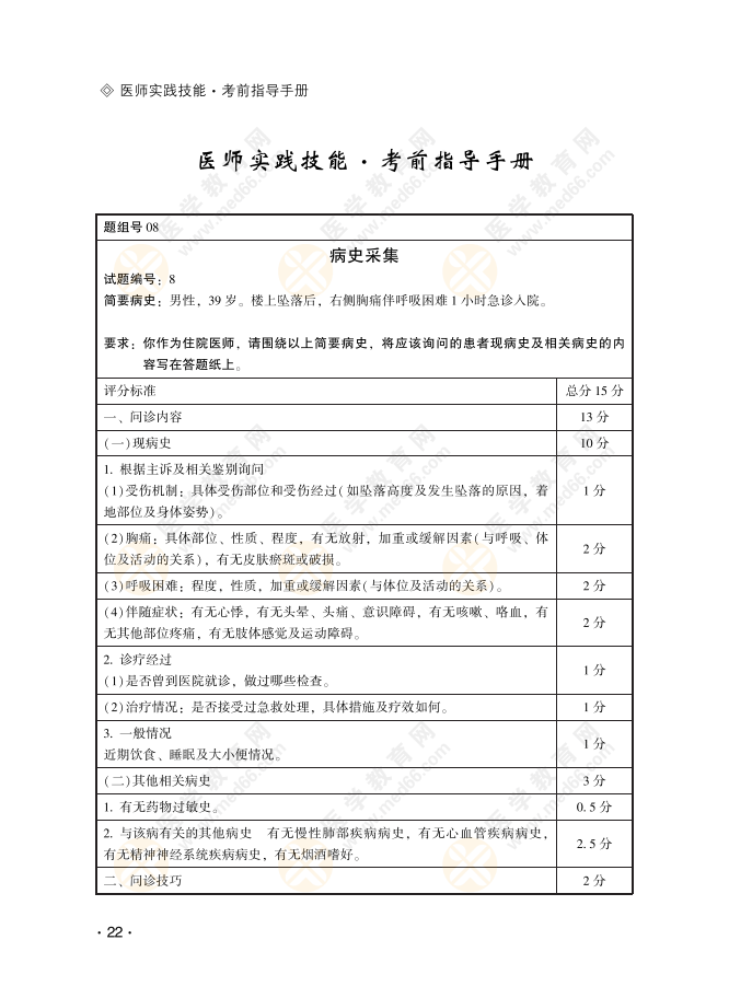 2022年临床助理医师实践技能考试第一站病史采集习题