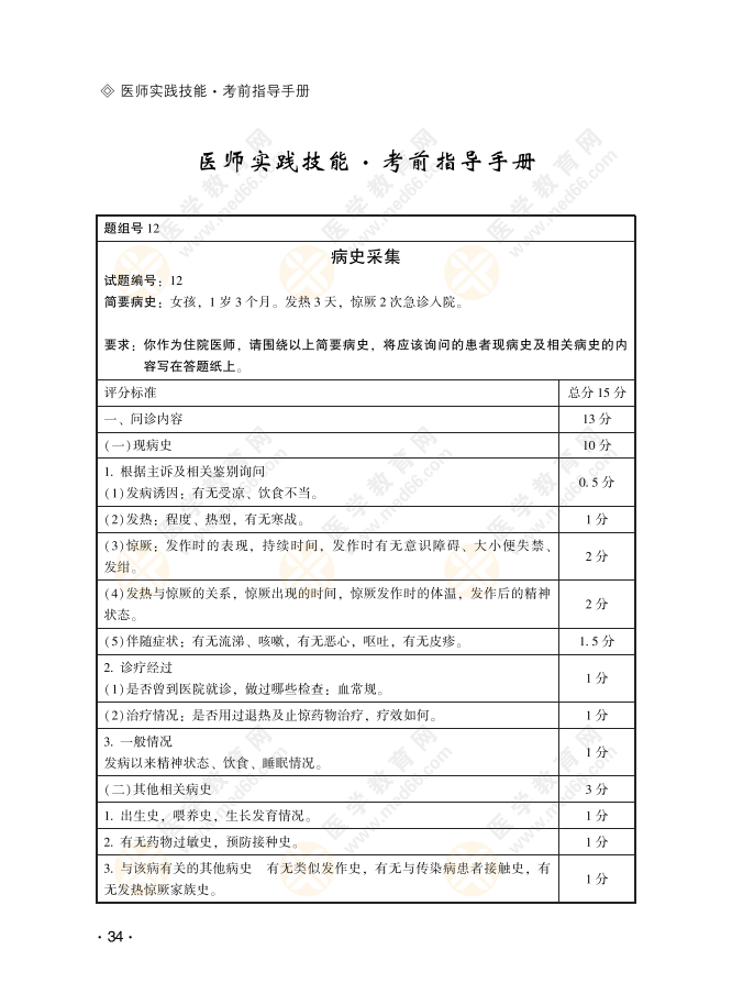 临床助理医师实践技能考试【病史采集】模考练习52题!
