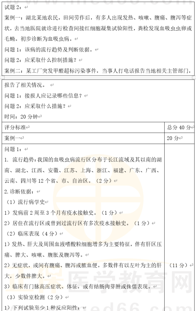 公卫医师资格考试实践技能公共卫生案例分析历年考点题汇总