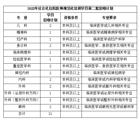 通辽市医院2022年住院医师规范化培训招收简章