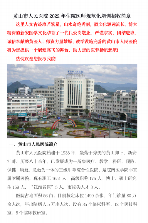 黄山市人民医院2022年住院医师规范化培训招生简章