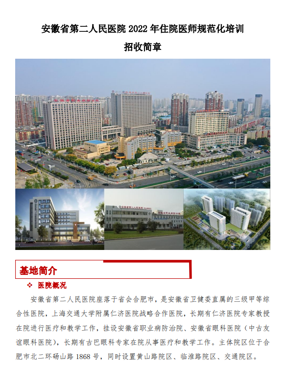 安徽省第二人民医院2022年住院医师规范化培训招生简章