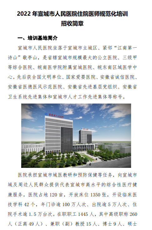 宣城市人民医院2022年住院医师规范化培训招生简章