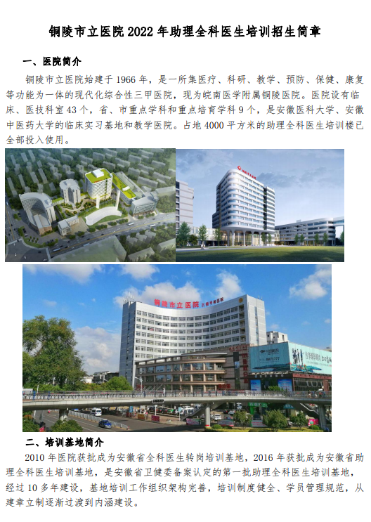 铜陵市立医院2022年住院医师规范化培训招生简章