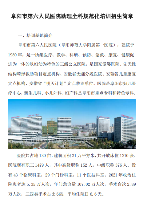 阜阳市第六人民医院2022年住院医师规范化培训招生简章
