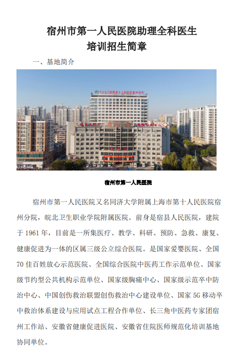 宿州市第一人民医院2022年住院医师规范化培训招生简章