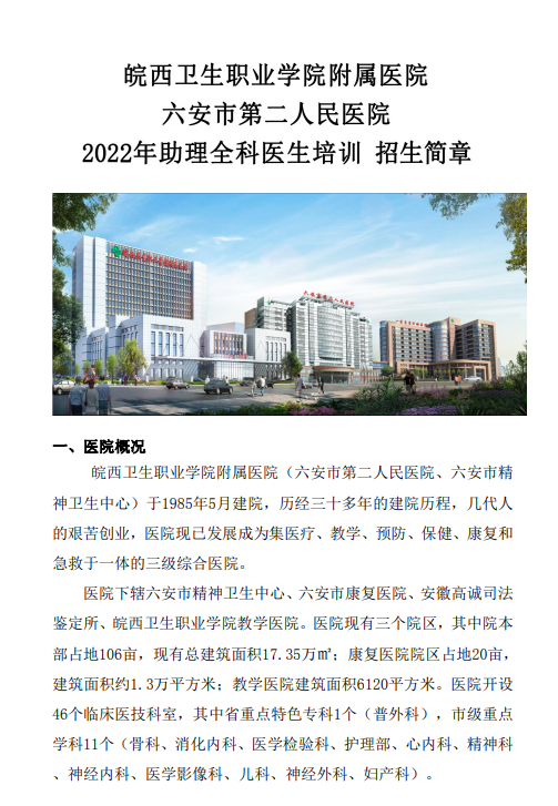 六安市第二人民医院2022年住院医师规范化培训招生简章