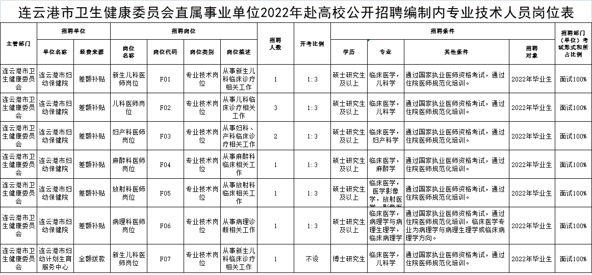 连云港市妇幼保健院2022年第一批赴高校招聘编制内专业技术人员10人