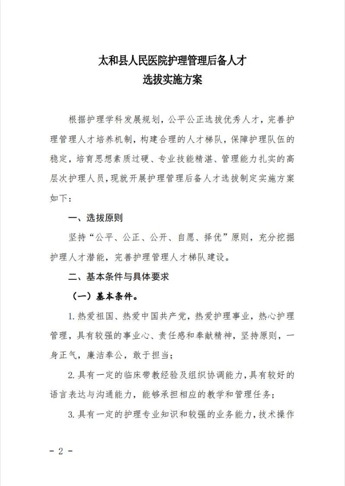 安徽省阜阳市太和县人民医院护理管理后备人才招聘20人