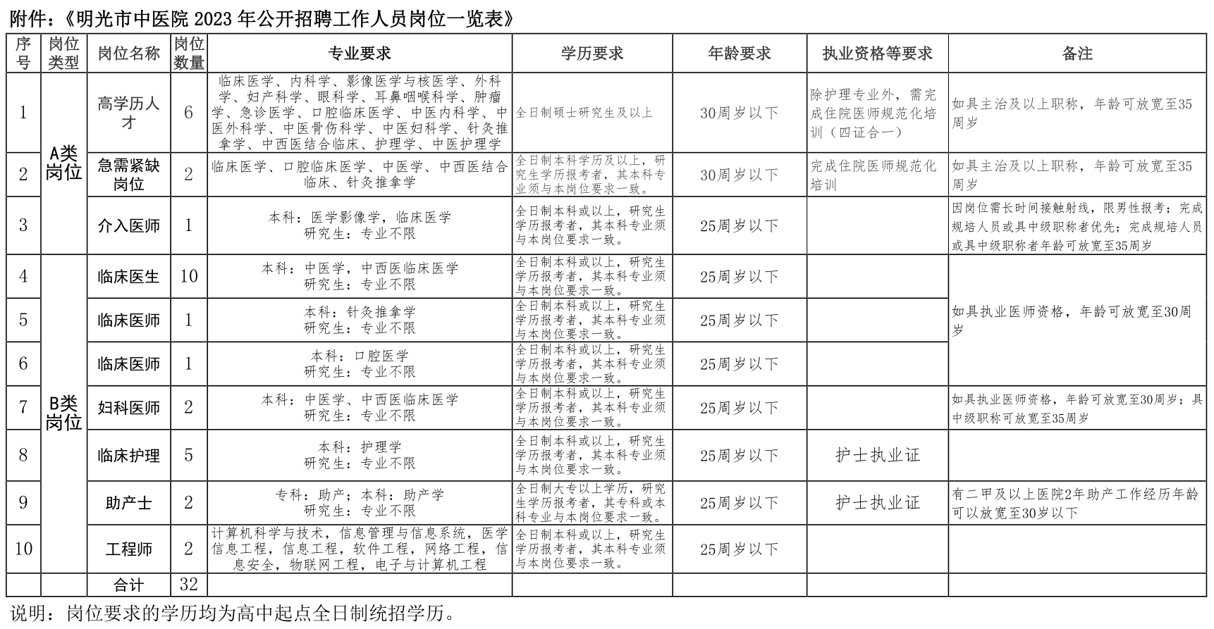 安徽省滁州市明光市中医院2023年5月招聘工作人员32名