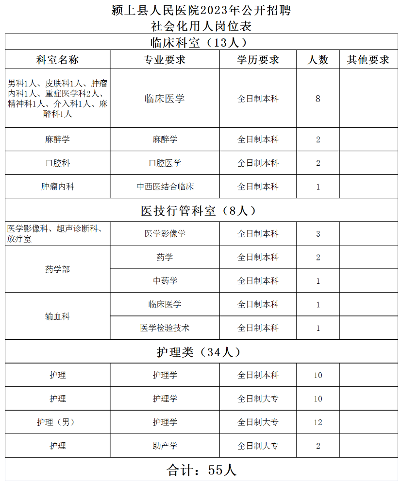 安徽省阜阳市颍上县人民医院2023年招聘社会化用人55名