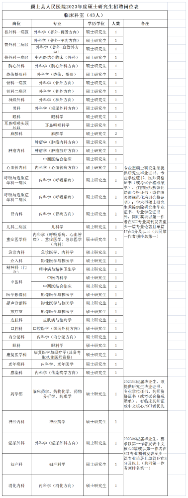 安徽省阜阳市颍上县人民医院2023年招聘硕士研究生43名