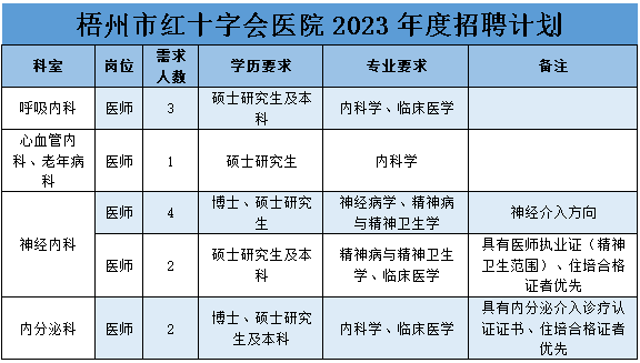 广西梧州市红十字会医院2023年招聘工作人员182人