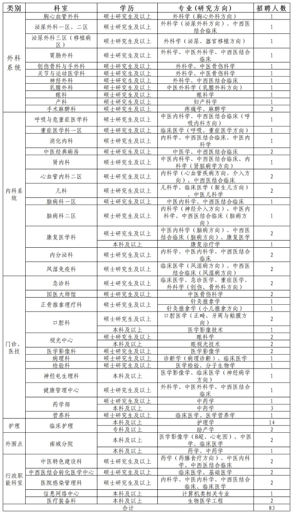 广西中医药大学附属瑞康医院2023年招聘人才83人