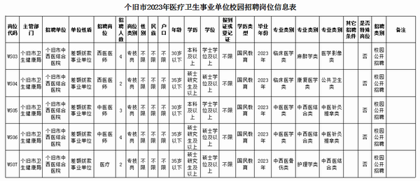 云南省个旧市中西医结合医院2023年校园招聘事业编制15人、编外若干