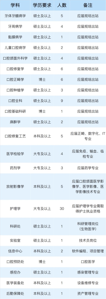 关于上海市口腔医院2021年招聘医疗工作人员的招聘简章