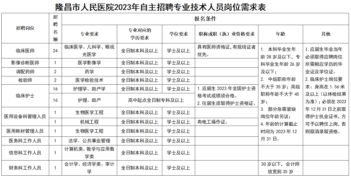 四川省内江市隆昌市人民医院2023年自主招聘专业技术人员67名