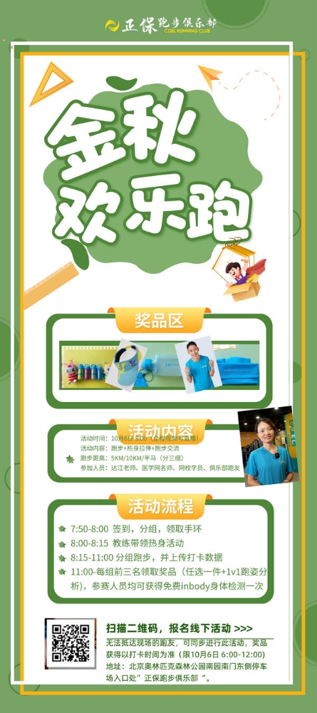 10月6日金秋欢乐跑 钱韵文老师领跑 等你来加入(北京)