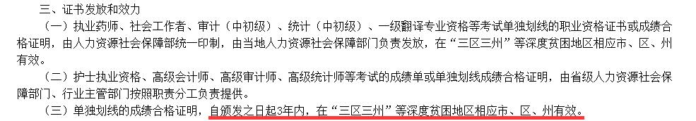 如果你是通过了“三区三州”合格标准,那么你的考试成绩证明有效期为3年,且只在相应地区有效。