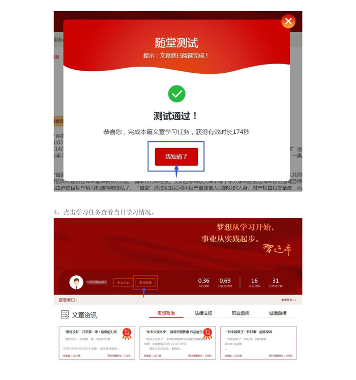 (3)阅读文章按每650字计一分钟学习时长,文章最上方的学习进度条已满视为完成阅读;视频学习按视频实际时长计为学习时长。