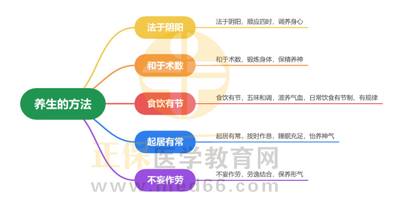 2024年中西医执业医师考试中,中医经典科目根据近两年考题来看难度不小,主要考察原文的背诵及理解,需要花费时间去记忆。医学教育网小编为大家整理“养生的方法”考点思维导图供大家复习: