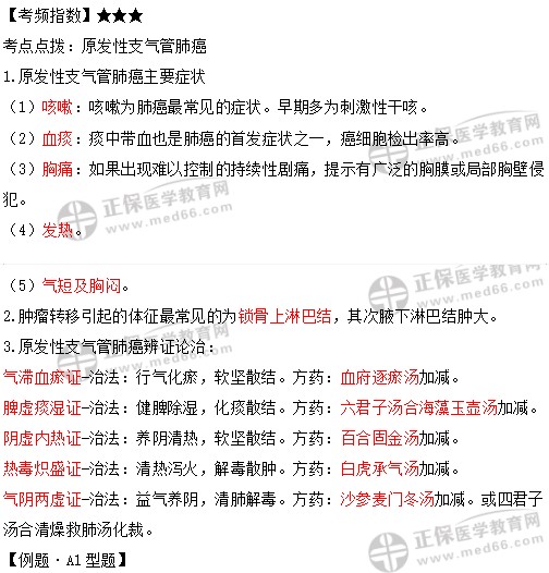 以上是小编为大家整理的“中西医结合外科学胸部疾病“原发性支气管肺癌”考点点拨”的相关内容,希望以上内容对广大中西医执业医师考生有帮助!更多中西医执业医师考试相关资讯请关注医学教育网中西医执业/助理医师栏目!