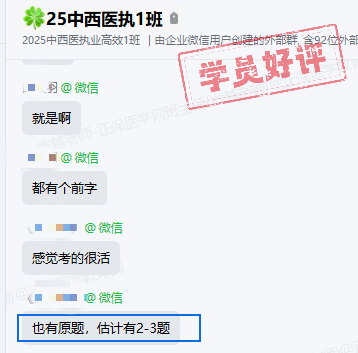 2025中西医执业医师综合笔试第一单元已经于上午考完,各位考生觉得今年考纲教材变动后难度大吗?根据网校学员反馈:考的细,但是有原题!考生反馈:感觉好几道都是原题,最后几道题简单!