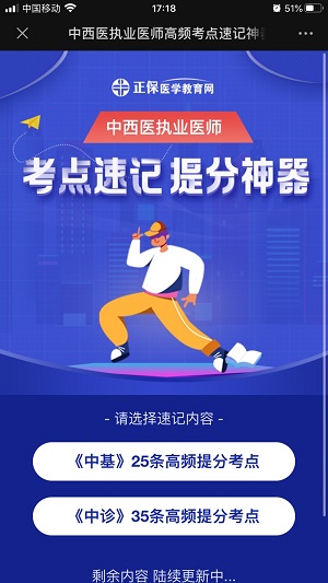 好消息!好消息!正保医学教育网全新推出中西医执业医师考点速记**神器,为大家准备了15大科目精选速记考点,实时更新中!不会的考点刷一刷,再记一遍!赶紧去分享软件学习吧!