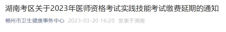 注意!湖南郴州考点2023医师资格考试技能缴费延期至26日结束!医学教育网小编专门整理了郴州考点发布的官方通知内容如下,请相关考生及时查看!