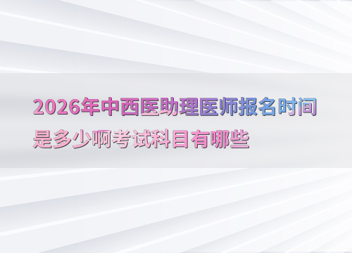 2026年中西医助理医师考试报名预计在1月至2月进行,参考2025年报名时间为2月8日至2月21日,建议考生提前关注国家医学考试网(www.nmec.org.cn)公告。